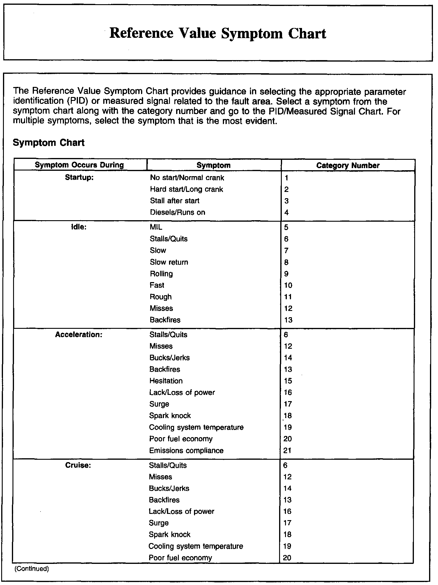 REFERENCE VALUE SYMPTOM CHART