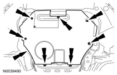 1. With the vehicle in NEUTRAL, position it on a hoist. For additional information, refer to Jacking and Lifting Service and Repair.