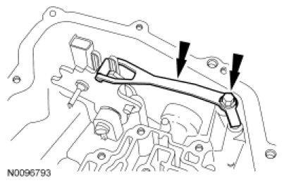 2. Inspect the manual pin to make sure it is correctly installed in the manual valve. If it is not, pull the manual control lever shaft out and correctly install the manual pin in the manual valve and position the manual control lever shaft in place.