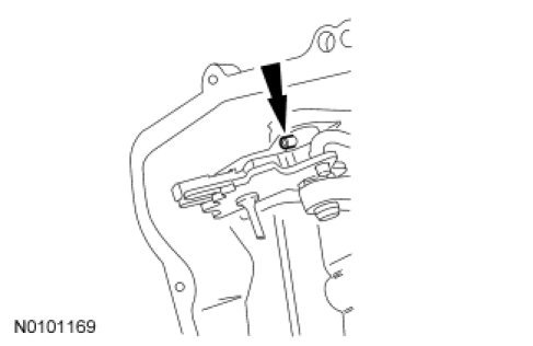 15. Connect the selector lever cable end to the manual control lever with the manual control lever and selector lever in DRIVE. Check selector lever cable adjustment. For additional information, refer to Automatic Transaxle/Transmission External Controls - Aisin AW21/6F35 Adjustments.