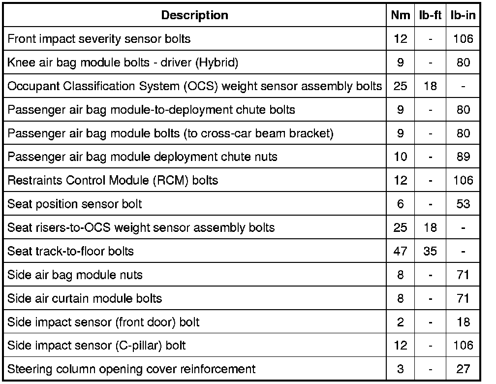 Torque Specifications