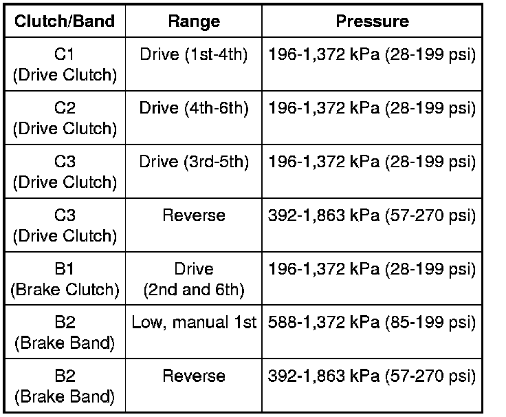 Clutch and Brake Pressure Chart