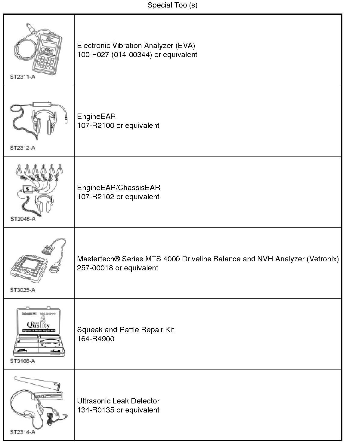 The following diagnostic tools and techniques can be used separately or in conjunction with each other to aid in the diagnosis of NVH symptoms. They are listed in order of preference for ease in their use for locating these symptoms.