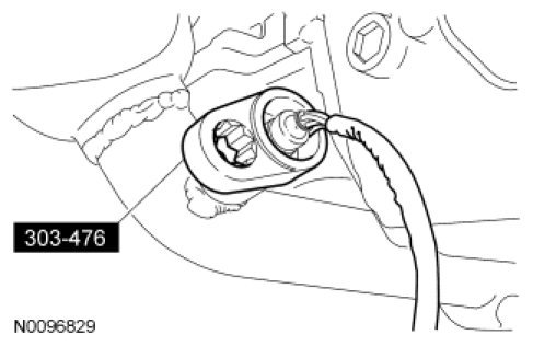 1. With the vehicle in NEUTRAL, position it on a hoist. For additional information, refer to Jacking and Lifting Service and Repair.