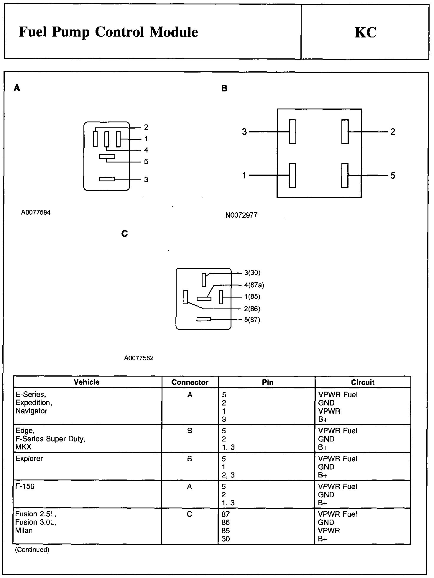 PINPOINT TEST KC: FUEL PUMP CONTROL MODULE