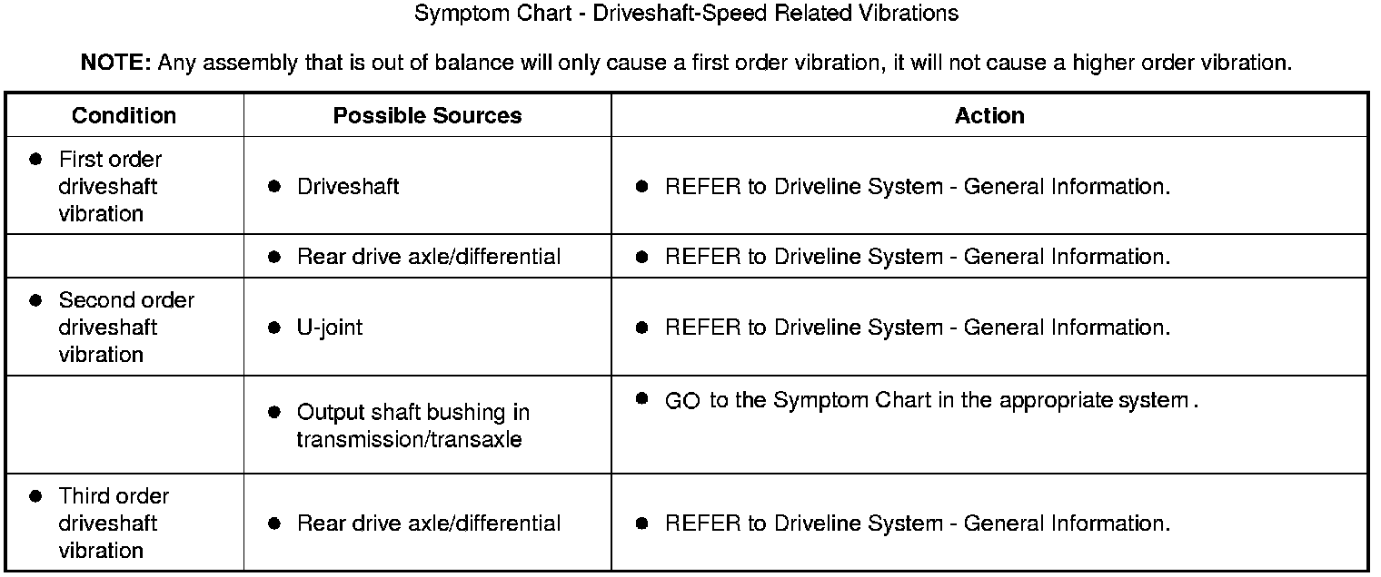 Symptom Chart - Driveshaft-Speed Related Vibrations