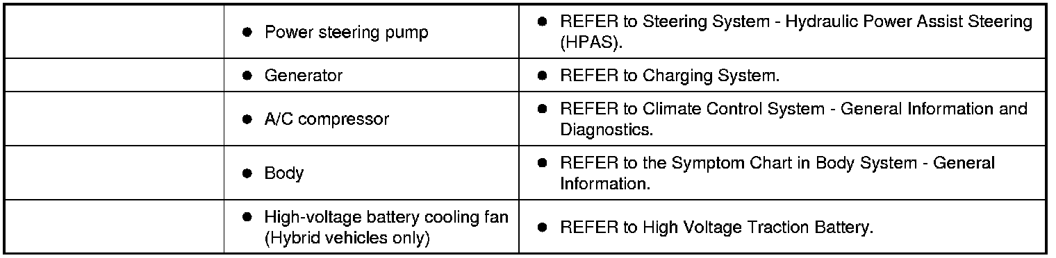 - If the symptom is definitely engine speed-related, carry out the Engine Accessory Test to narrow down the source.