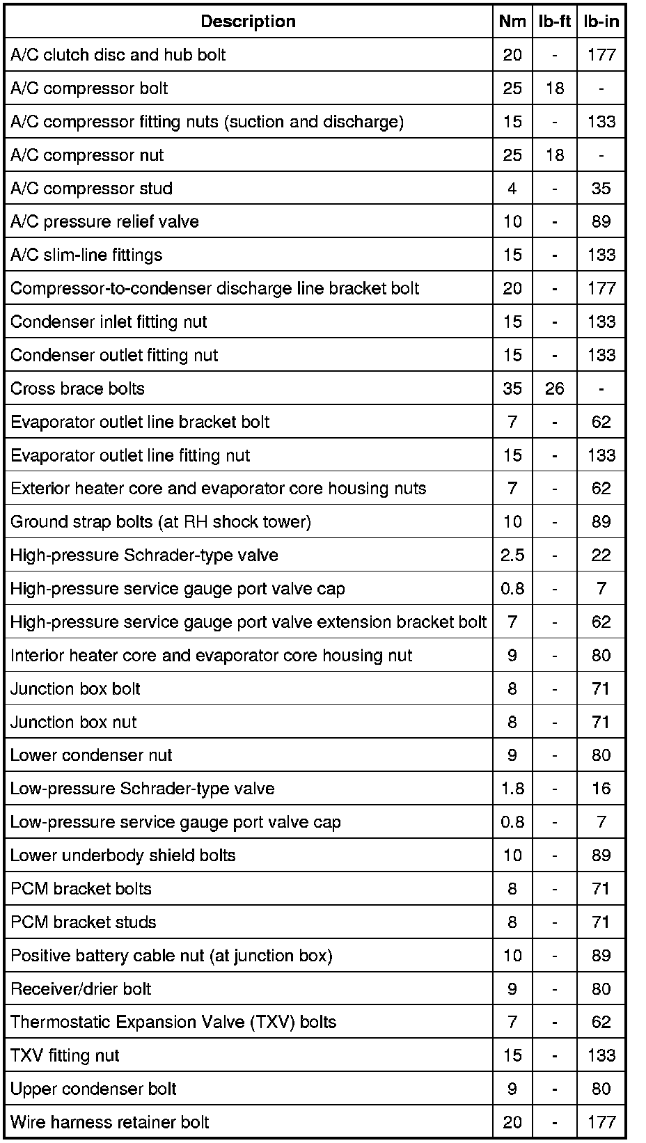 Torque Specifications