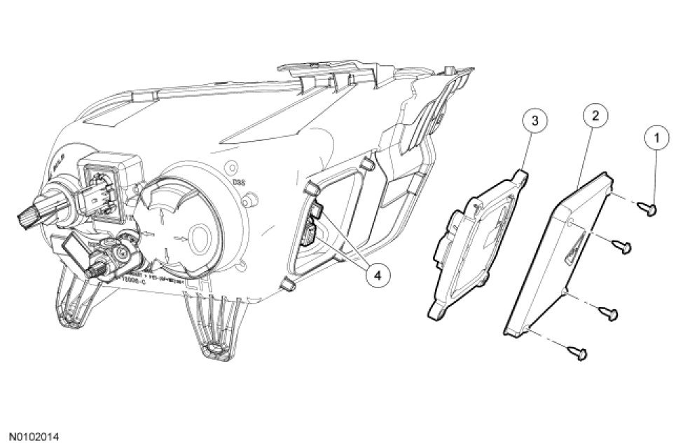 1. Remove the headlamp assembly. For additional information, refer to Headlamp Assembly Service and Repair.