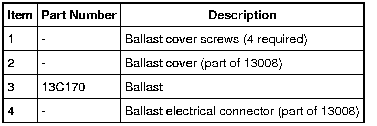 3. Disconnect the electrical connectors and remove the ballast.