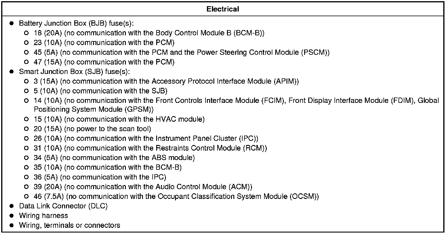 Home >> Ford >> 2011 >> Mustang V6-3.7L >> Repair and Diagnosis >> Powertrain Management >> Computers and Control Systems >> Information Bus >> Testing and Inspection >> Initial Inspection and Diagnostic Overview >> Module Communications Network >> Inspection and Verification