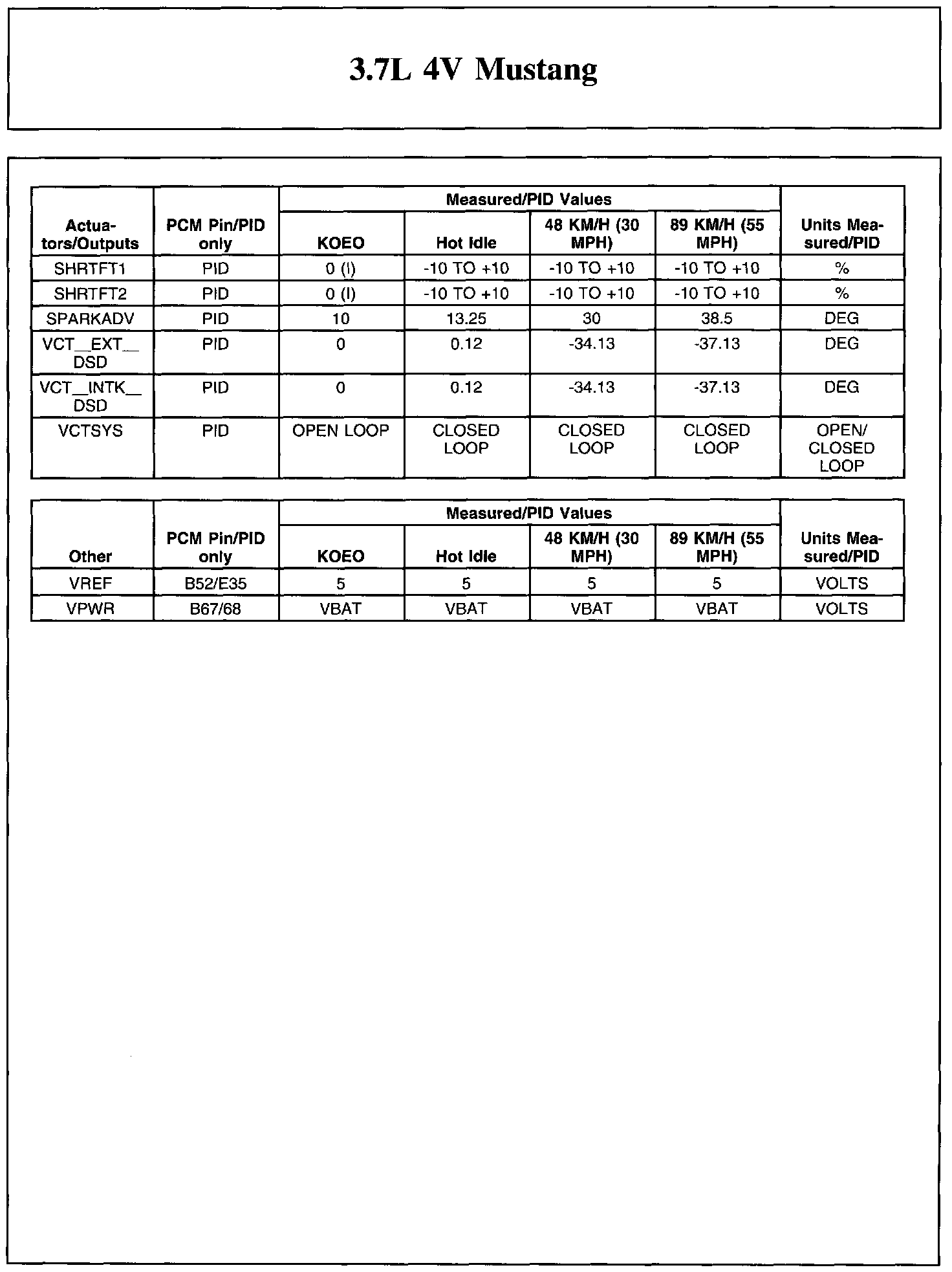 Home >> Ford >> 2011 >> Mustang V6-3.7L >> Repair and Diagnosis >> Powertrain Management >> Computers and Control Systems >> Testing and Inspection >> Scan Tool Testing and Procedures >> Typical Diagnostic Reference Values