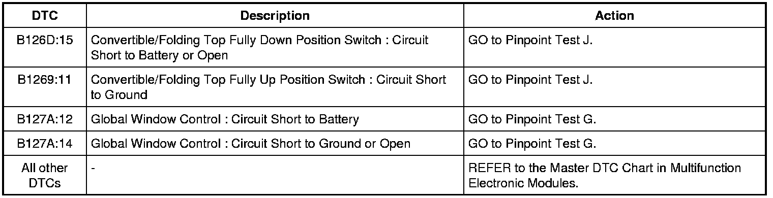 Home >> Ford >> 2011 >> Mustang V6-3.7L >> Repair and Diagnosis >> Windows and Glass >> Windows >> Testing and Inspection >> Diagnostic Trouble Code Tests and Associated Procedures >> Body Control Module B (BCM-B) DTC Chart
