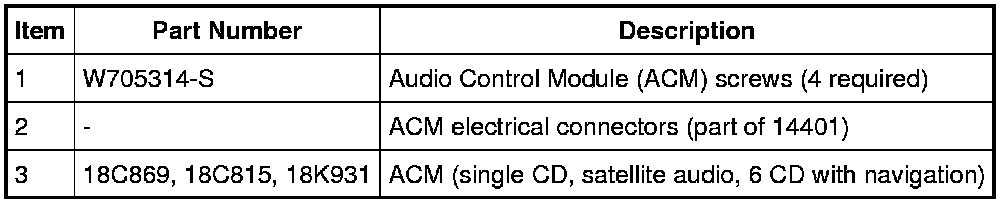 NOTE: It is not necessary to remove the Audio Control Module (ACM) to retrieve the part number. For additional information, refer to Audio Control Module (ACM) Self-Diagnostic Mode Audio Control Module (ACM) Self-Diagnostic Mode.