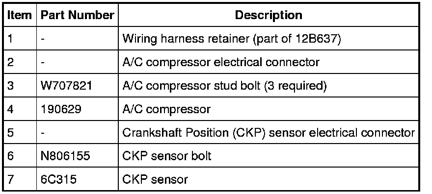 NOTE: The A/C compressor must be positioned aside to access the Crankshaft Position (CKP) sensor, it is not necessary to remove the A/C compressor from the vehicle.