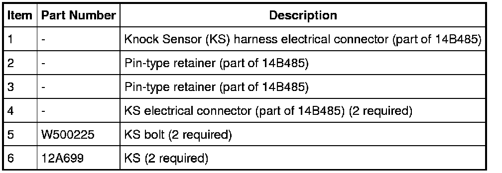 NOTICE: Note the position and orientation of each Knock Sensor (KS). The sensors must be installed in the same position as removed or damage to the sensors may occur.
