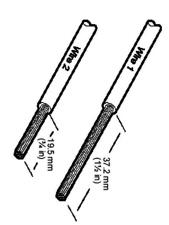 2. Strip 6.35mm (1/4 in) of insulation from each wire end, taking care not to nick or cut wire strands.