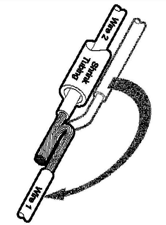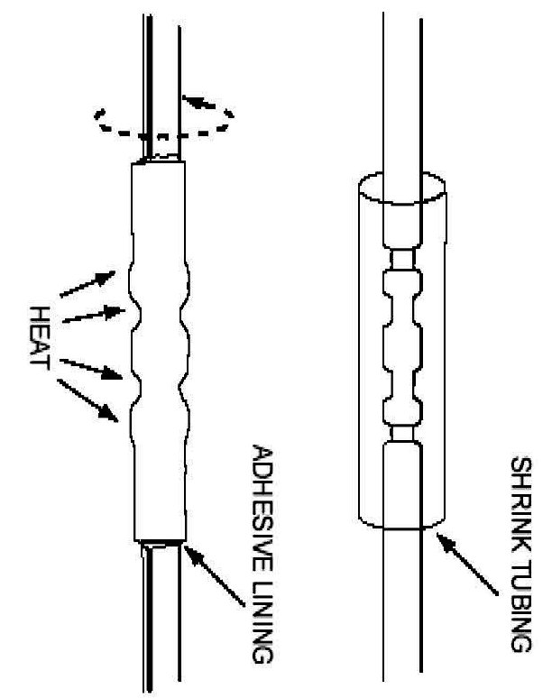 13. Use shielded heat gun to heat the repaired area until adhesive flows out of both ends of the heat shrink tubing.
