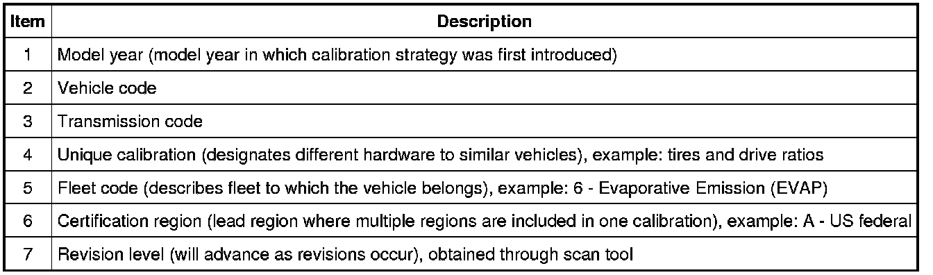 The Emissions/Corporate Average Fuel Economy/CO2 Compliance Department is responsible for assigning these calibration numbers. Unique calibration identifications are assigned to cover similar vehicles to differentiate tires, drive configurations, final drive ratios and other certification-significant factors.
