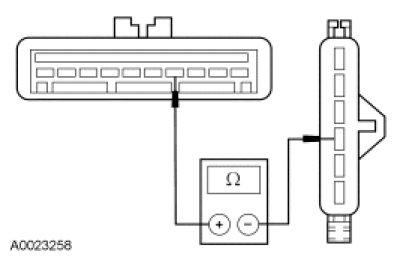 - Measure the resistance between the cruise control actuator C122-4, circuit CCB15 (BN/GN), harness side and the cruise control actuator, circuit GD123 (BK/GY), harness side.