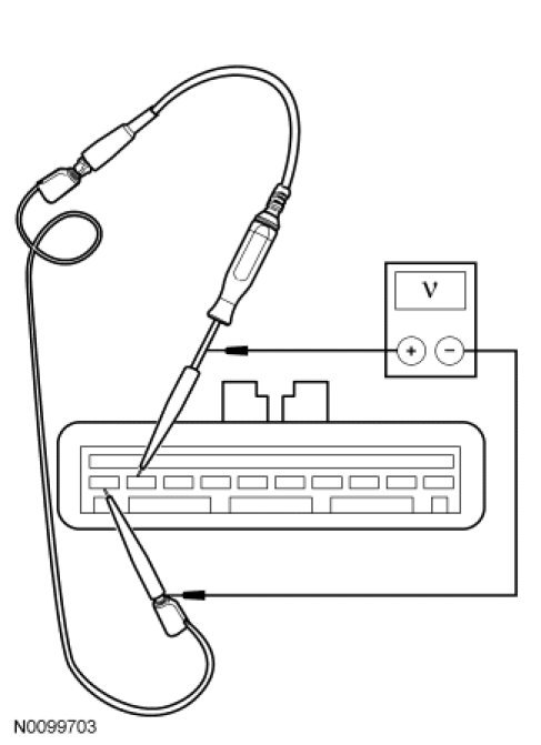- While applying and releasing the brake pedal, measure the voltage between the cruise control actuator C122-9, circuit CES09 (VT/OG), harness side the cruise control actuator C122-10, circuit GD123 (BK/GY), harness side.
