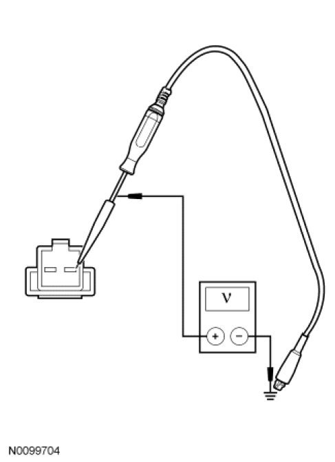 NOTICE: The following step uses a test light to simulate normal circuit loads. Use only the test lamp recommended in the special tools table or equivalent. To avoid connector terminal damage, use the Rotunda Flex Probe Kit for the test light probe connection to the vehicle. Do not use the test lamp probe directly on any connector.