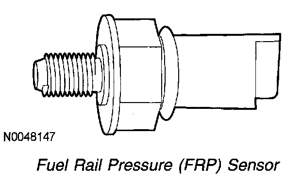 The FRP sensor is located on the fuel rail, and provides a feedback signal to indicate the fuel rail pressure to the PCM. The PCM uses the FRP signal to command the correct injector timing and pulse width for correct fuel delivery at all speed and load conditions. The FRP sensor, along with the fuel volume regulator (part of the fuel injection pump), form a closed loop fuel pressure control system. An electrically faulted FRP sensor results in the deactivation of the fuel injection pump. Fuel pressure to injectors is then provided only by the FP assembly. When the fuel injection pump is de-energized and the injectors are active, the fuel rail pressure is approximately 70 kPa (10 psi) lower than FP assembly pressure due to the pressure drop across the fuel injection pump. Thus, if the FP assembly pressure is 448 kPa (65 psi), then the fuel rail pressure would be approximately 379 kPa (55 psi) if the injectors are active.