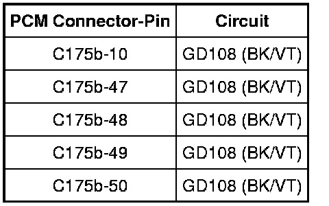 - Measure the resistance between the PCM, harness side and ground as follows: