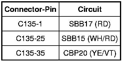- Measure the resistance between the ABS module C135-14, circuit VDB05 (WH), harness side and the DLC C251-14, circuit VDB05 (WH), harness side.