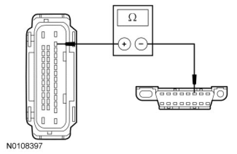 - Measure the resistance between the ABS module C135-26, circuit VDB04 (WH/BU), harness side and the DLC C251-6, circuit VDB04 (WH/BU), harness side.