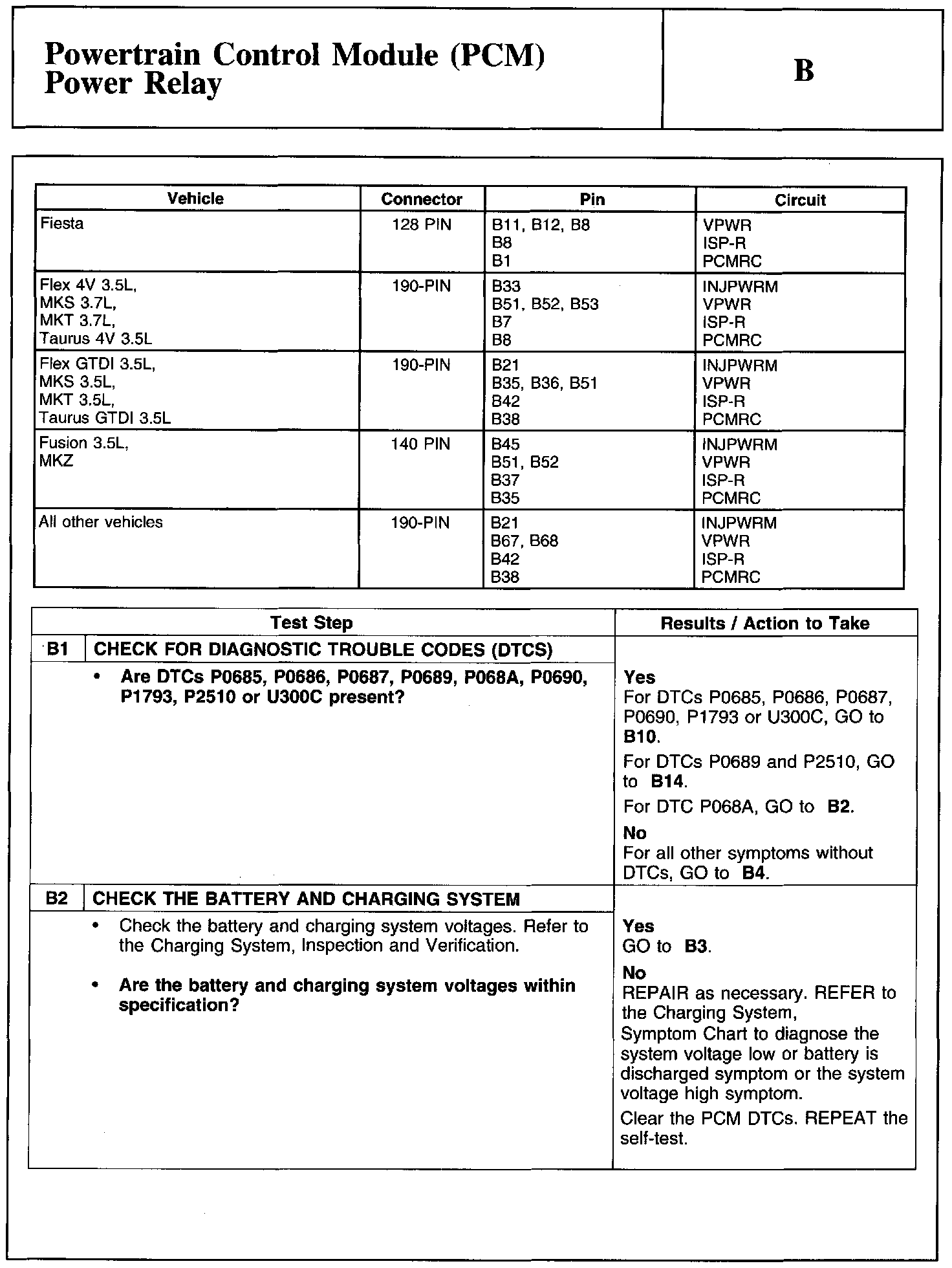 Test B: Powertrain Control Module (PCM) Power Relay