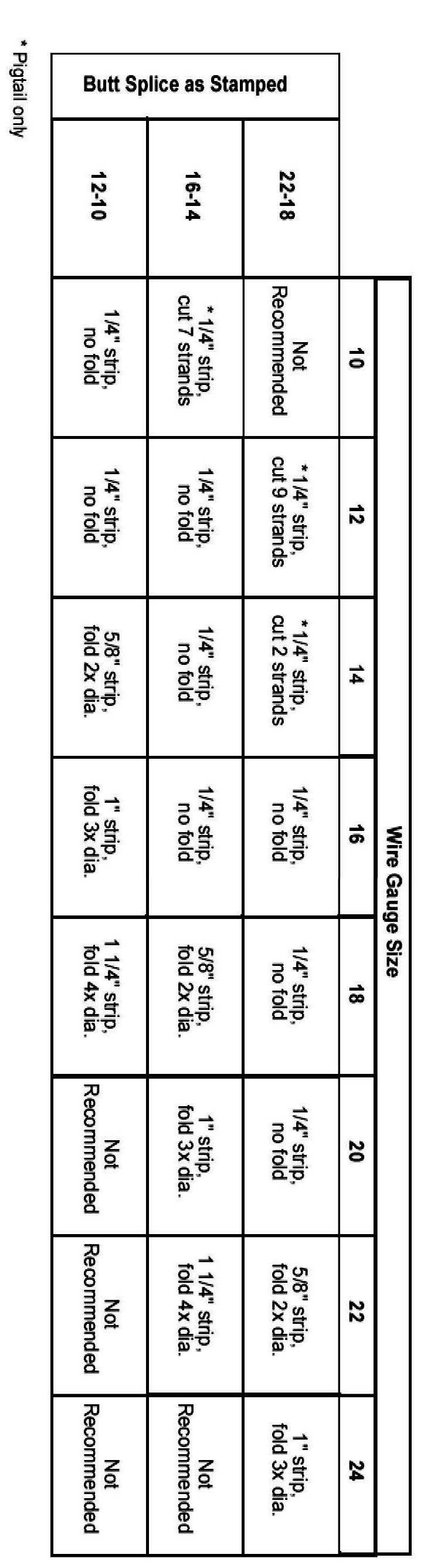 This chart is to be used when pigtails or terminals are different wire gauge than the vehicle harness.