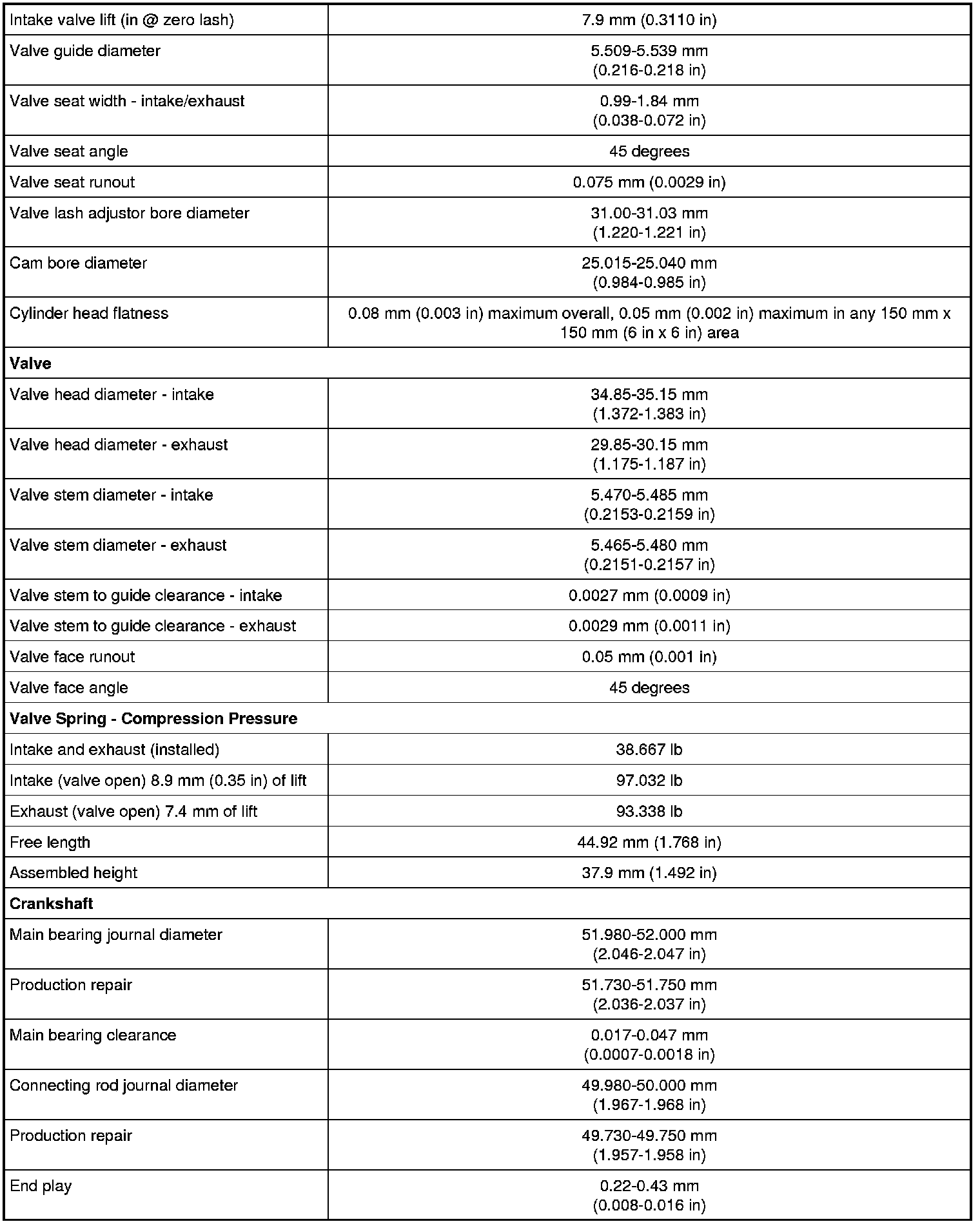 Torque Specifications
