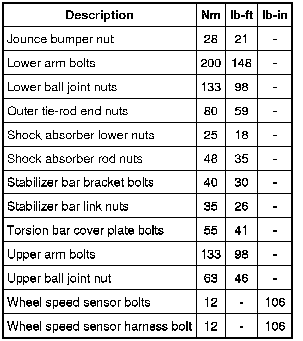 Torque Specifications