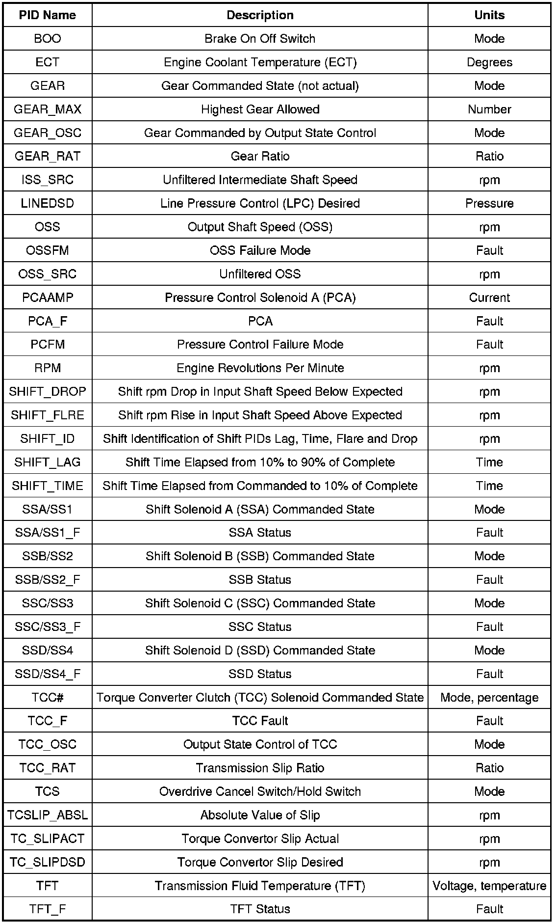 Diagnostic Parameters Identification (PID) Chart