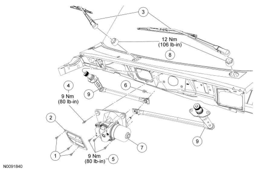 Wiper and Washer System - Exploded View