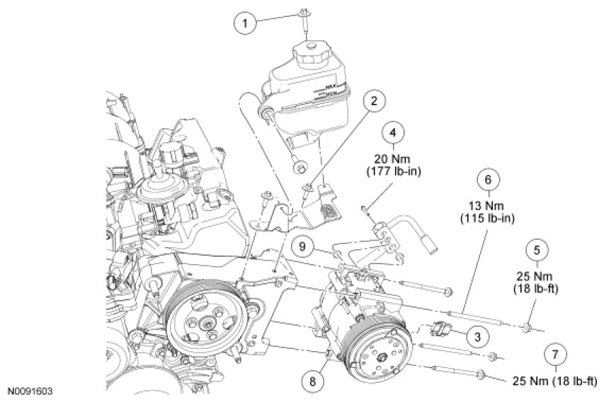 NOTE: A new A/C compressor may come equipped with an A/C clutch disc and hub, A/C compressor pulley and A/C clutch field coil already installed. If these components are not pre-installed, it will be necessary to transfer these parts from the old A/C compressor to the new compressor prior to installations of the A/C compressor if suitable for reuse.