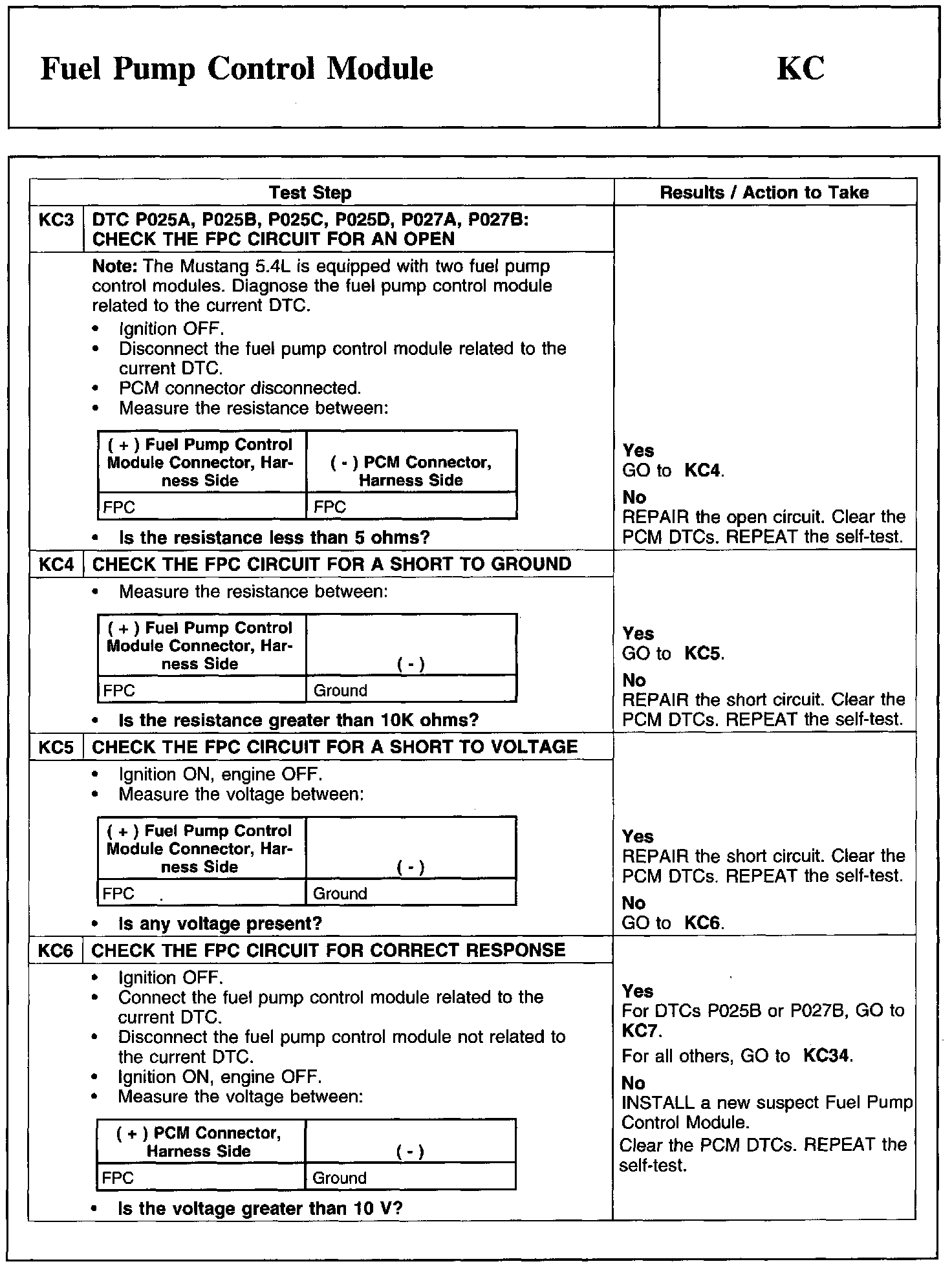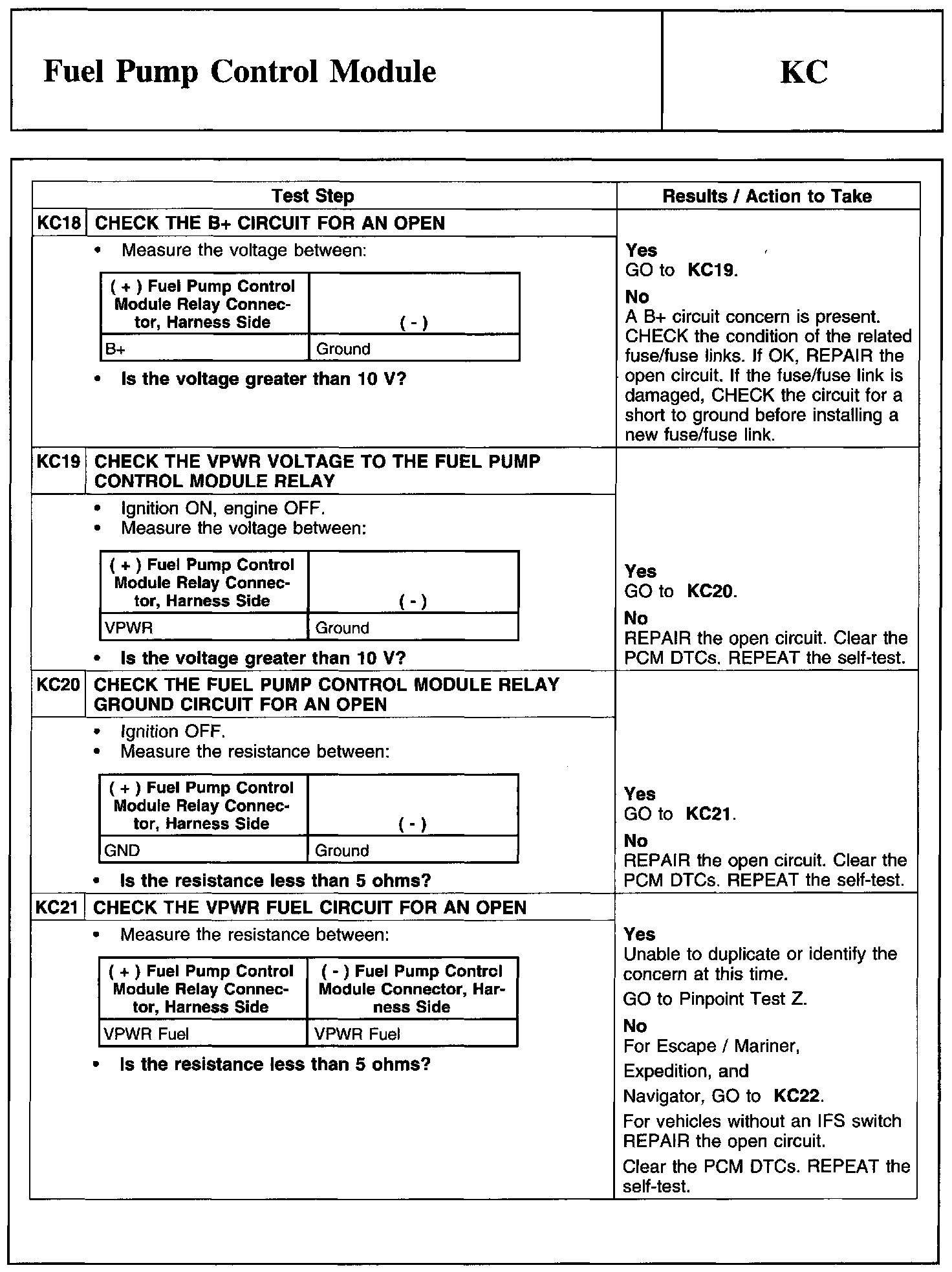 PINPOINT TEST KC: FUEL PUMP CONTROL MODULE