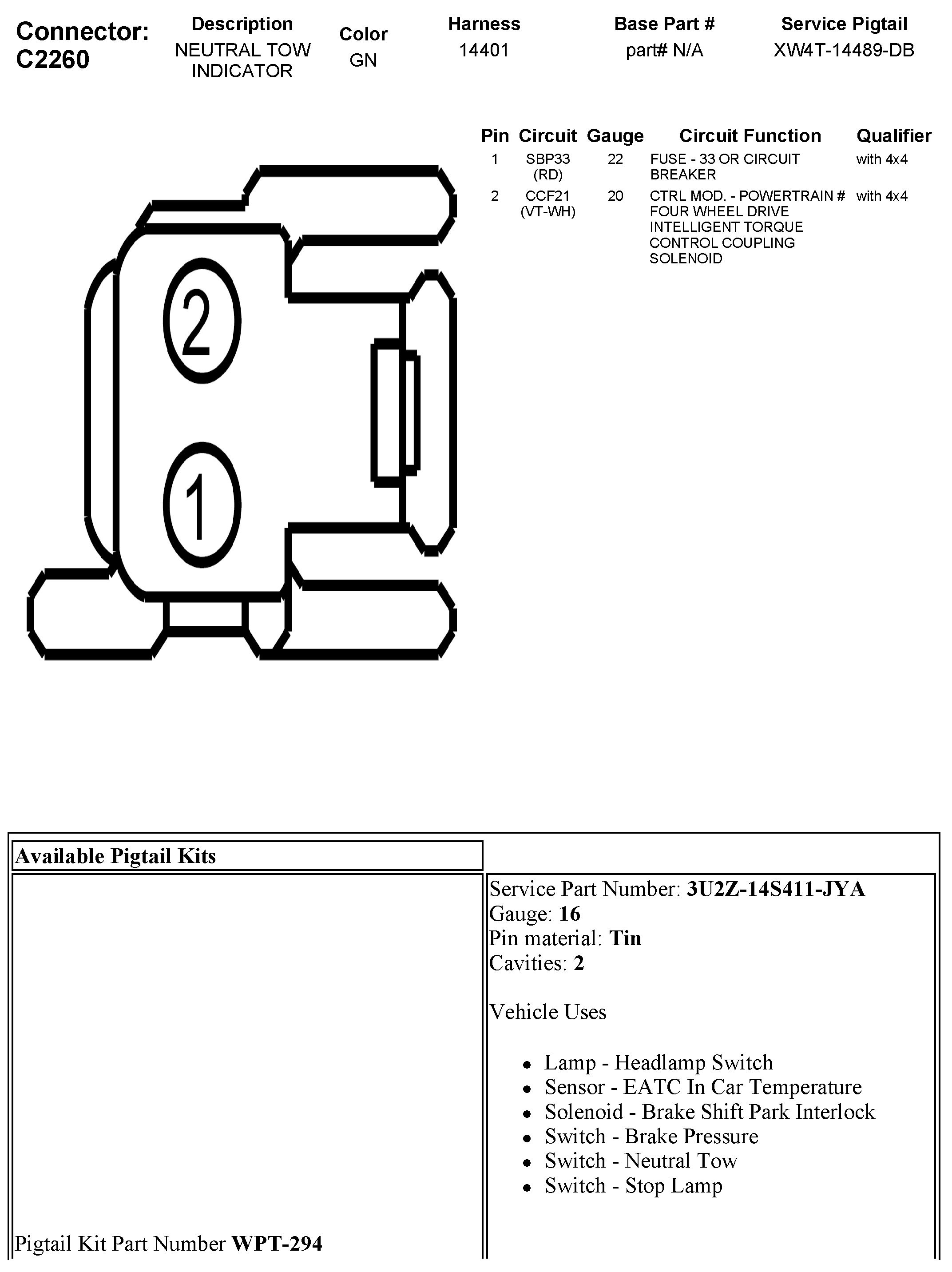 C2260 Neutral Tow Indicator