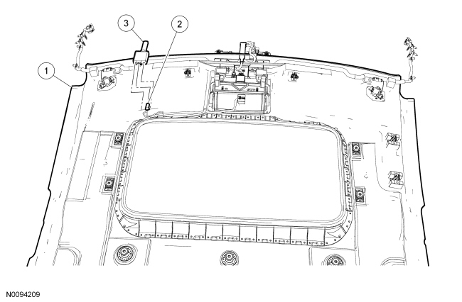 1. Remove the headliner. For additional information, refer to Interior Trim and Ornamentation Service and Repair.
