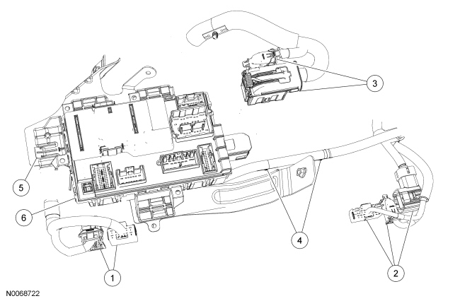 NOTE: Prior to the replacement of the module, it is necessary to upload the module configuration information to the scan tool. This information must be downloaded into the new module after installation. For additional information, refer to Module Configuration Testing and Inspection. In the event that As-Built data is required (the SJB does not communicate), all Remote Keyless Entry (RKE) devices must be programmed to the new SJB. A minimum of 2 devices are necessary to complete the configuration and turn off the flashing interior lights.