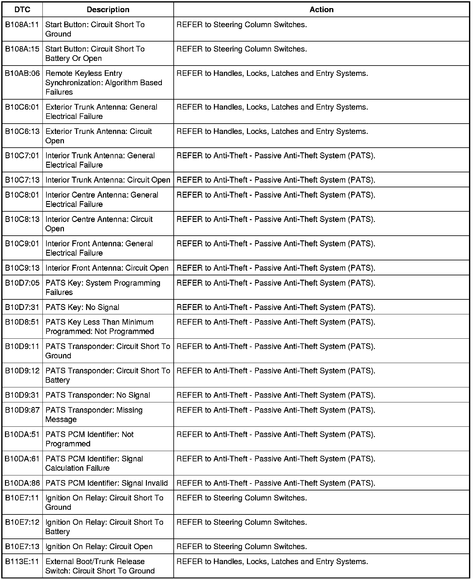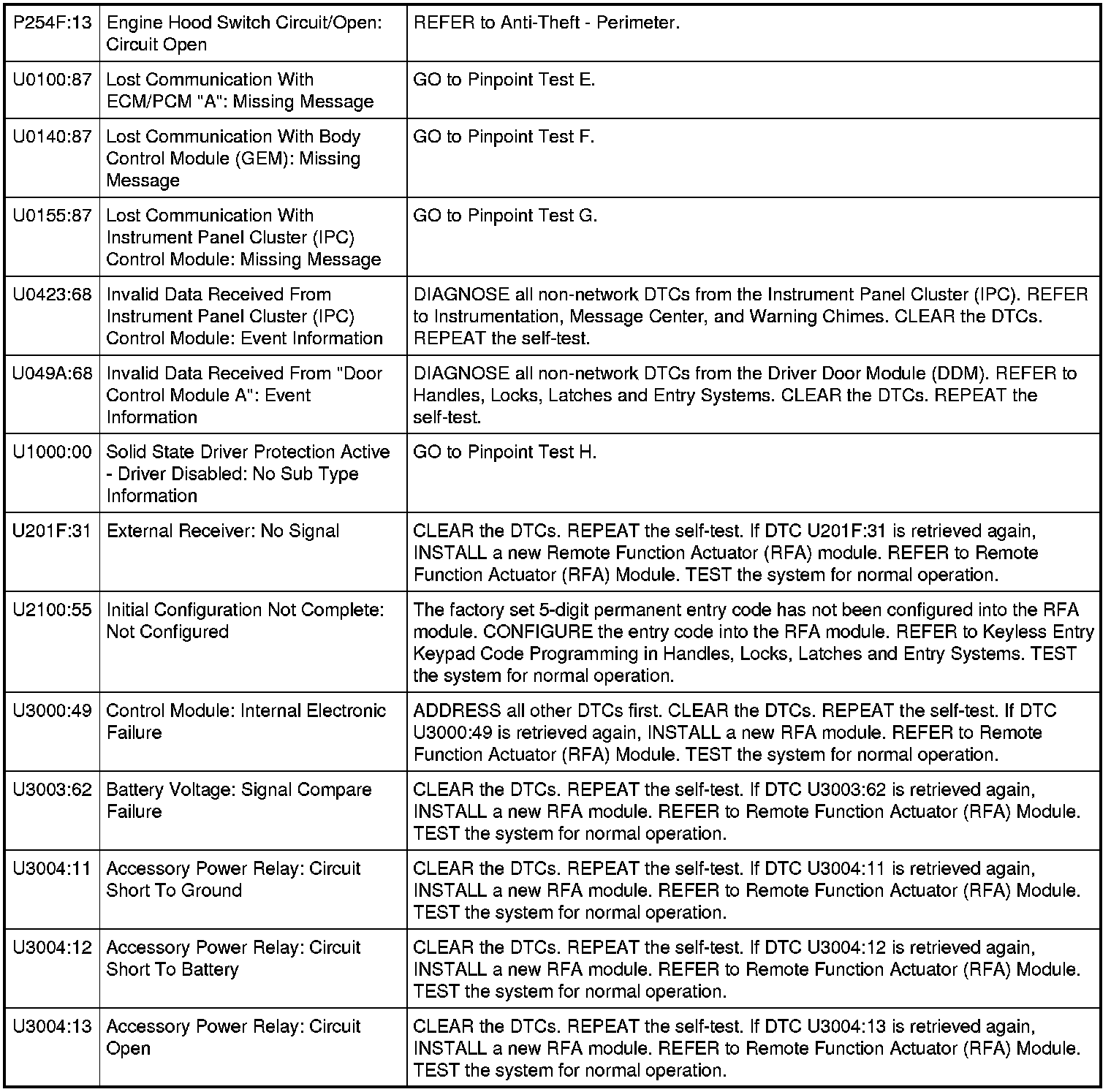 Home >> Ford >> 2011 >> Taurus AWD V6-3.5L >> Repair and Diagnosis >> Body and Frame >> Body Control Systems >> Testing and Inspection >> Diagnostic Trouble Code Tests and Associated Procedures >> Remote Function Actuator (RFA) Module