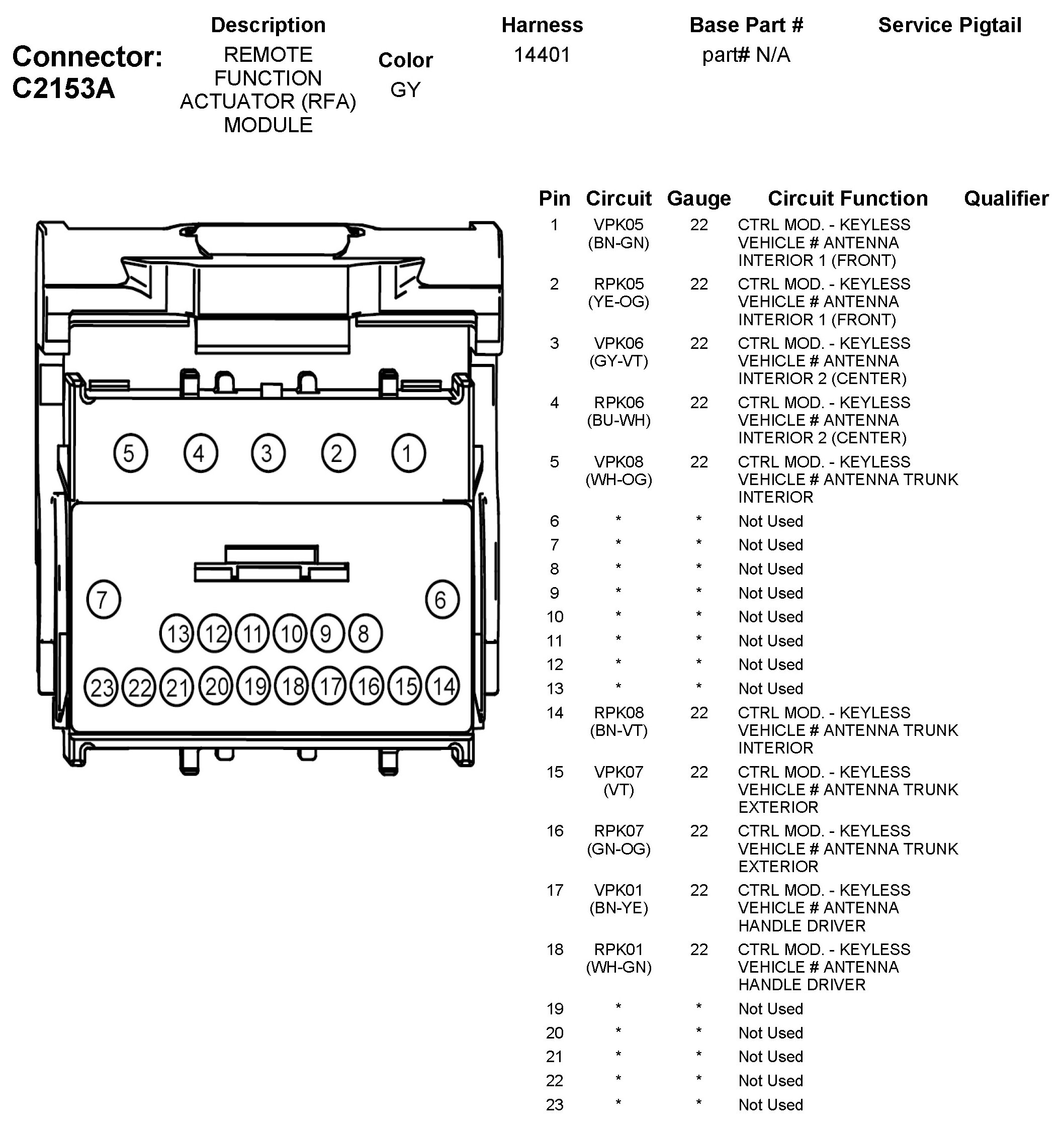 Home >> Ford >> 2011 >> Taurus AWD V6-3.5L >> Repair and Diagnosis >> Body and Frame >> Locks >> Keyless Entry >> Keyless Entry Transmitter >> Diagrams >> C2153A Remote Function Actuator (RFA) Module