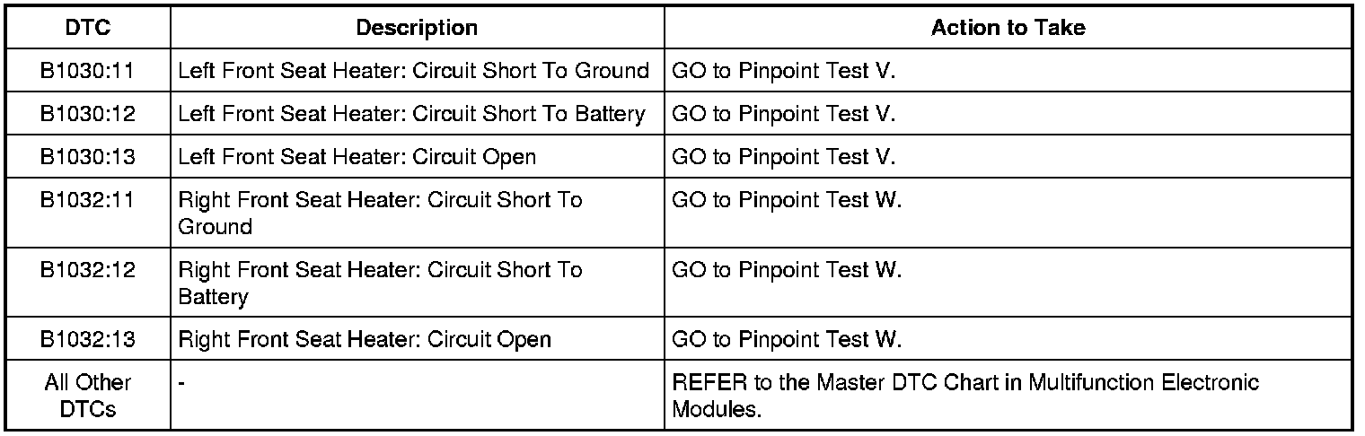 Home >> Ford >> 2011 >> Taurus AWD V6-3.5L >> Repair and Diagnosis >> Body and Frame >> Seats >> Testing and Inspection >> Diagnostic Trouble Code Tests and Associated Procedures >> HVAC Module DTC Chart