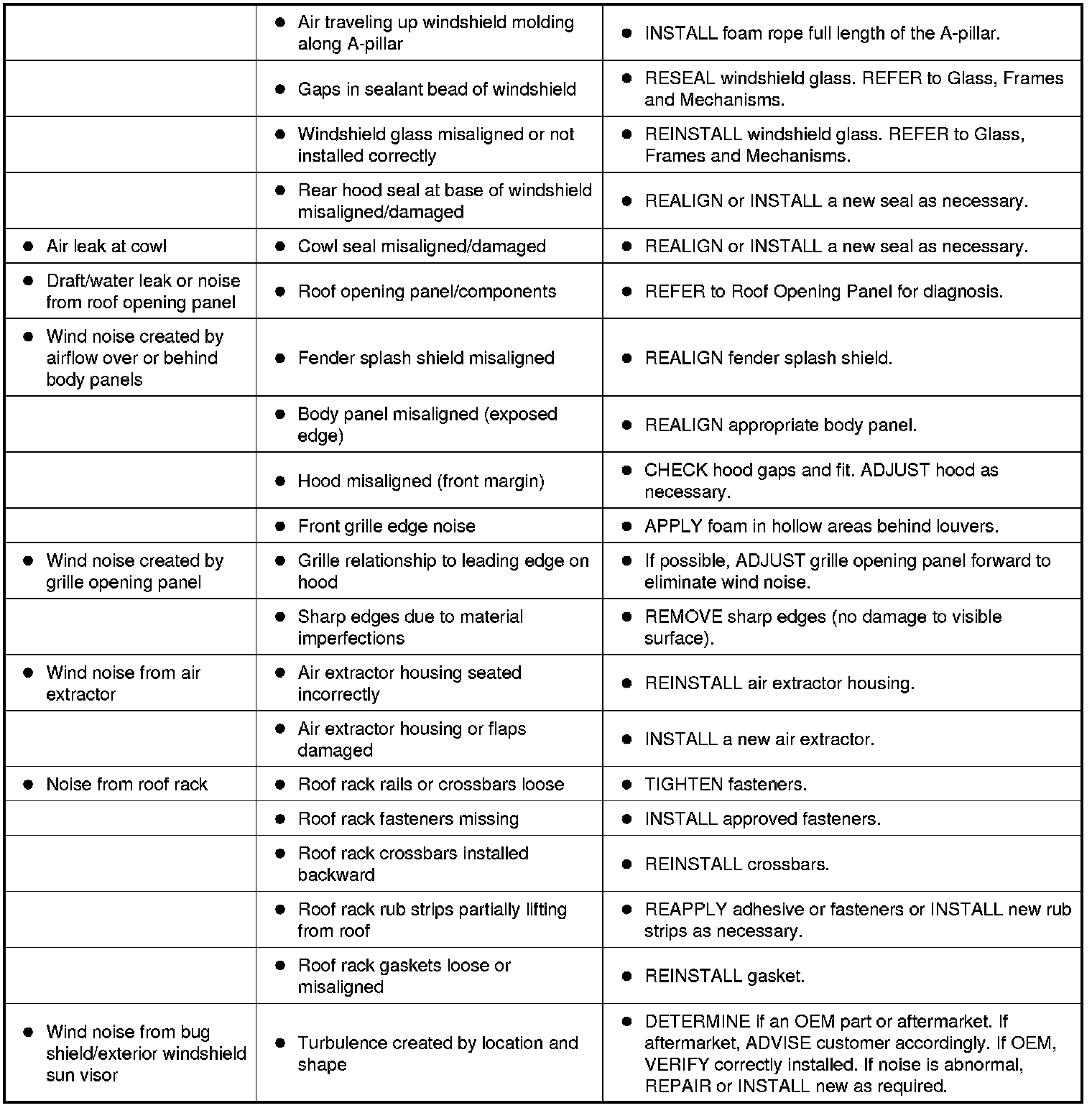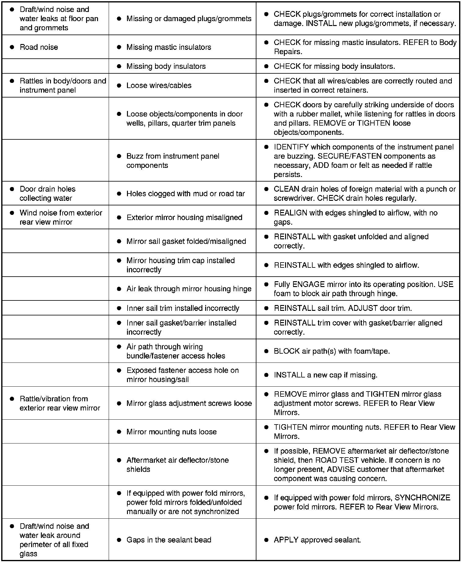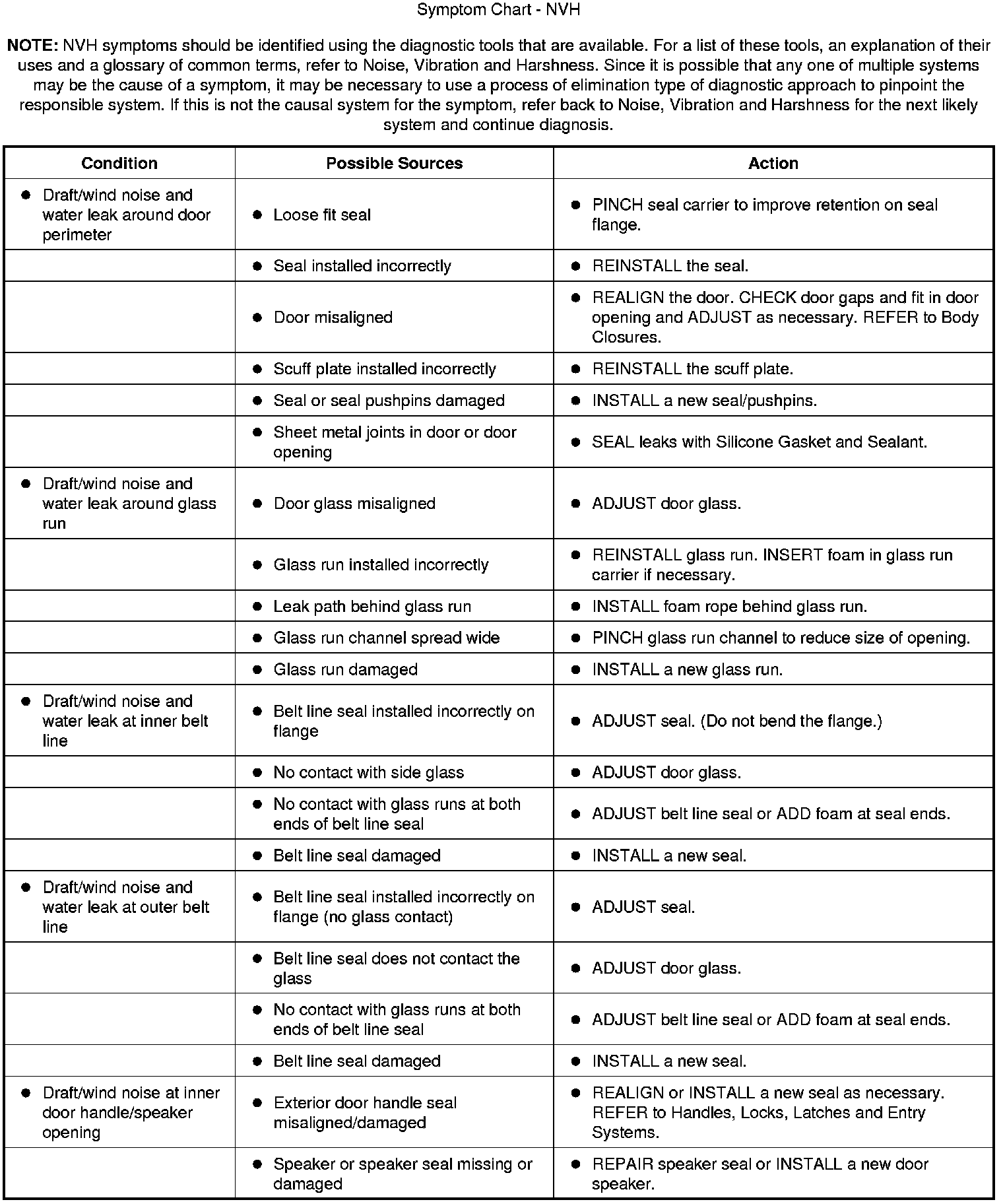 Symptom Chart - NVH