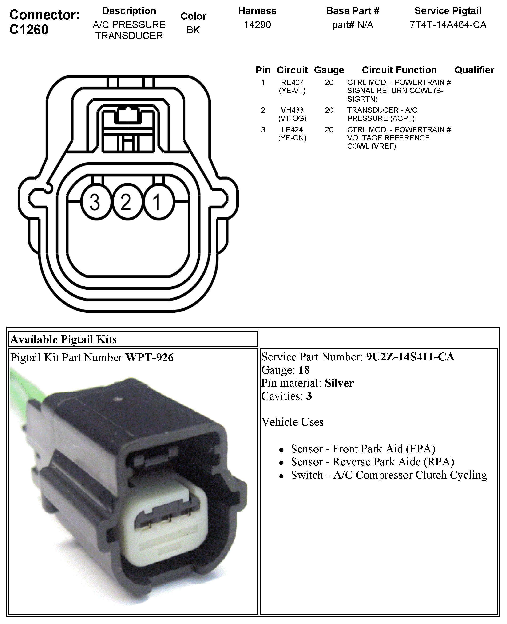 Refrigerant Pressure Sensor / Switch, HVAC