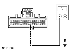 - Measure the voltage between ground and HVAC module - EMTC C2357-7, circuit VH440 (BU/BN), harness side.