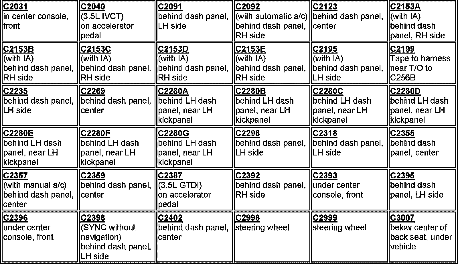 Connector Locations