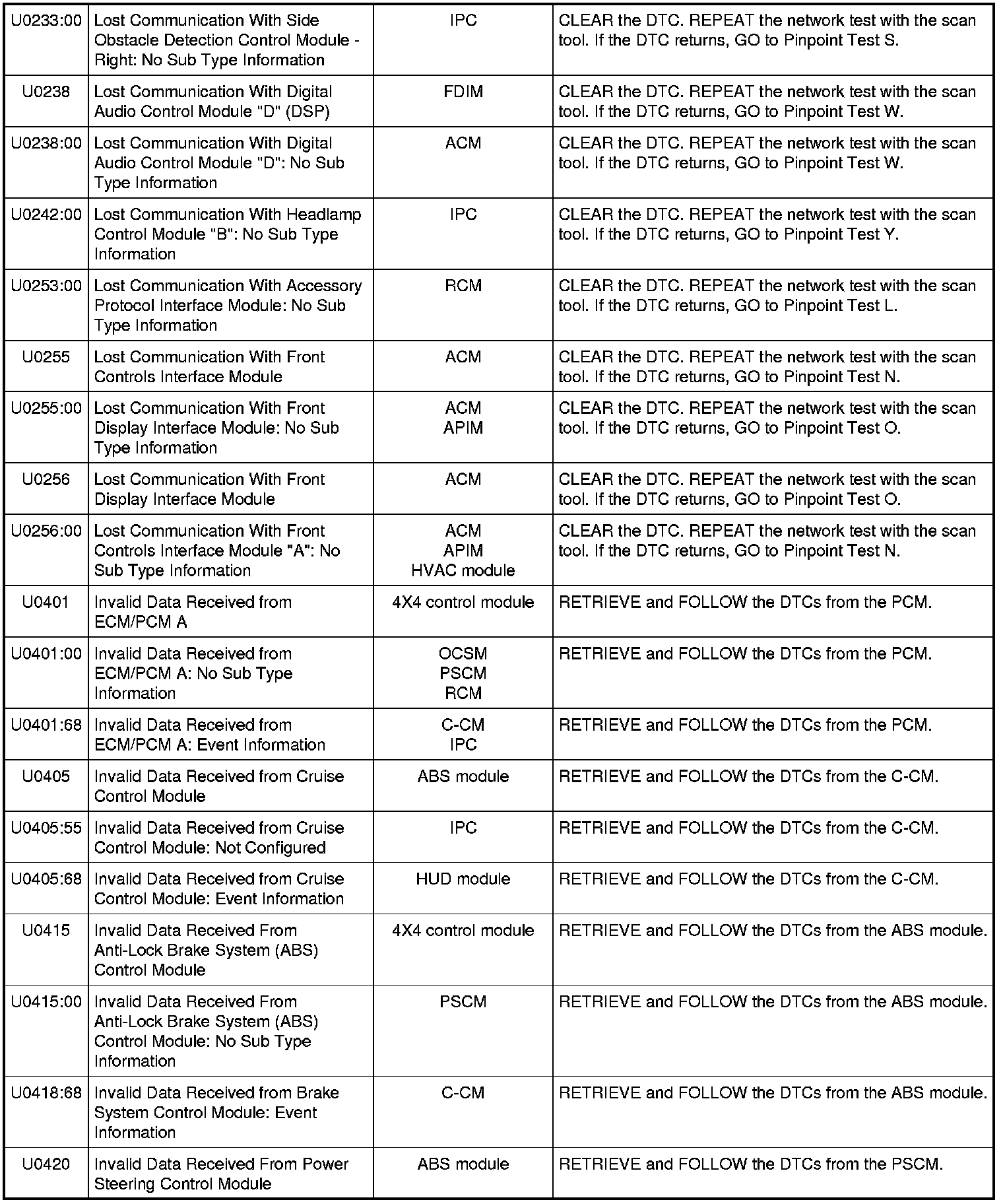 Home >> Ford >> 2011 >> Taurus AWD V6-3.5L >> Repair and Diagnosis >> Powertrain Management >> Computers and Control Systems >> Information Bus >> Testing and Inspection >> Diagnostic Trouble Code Tests and Associated Procedures >> Module Communications Network