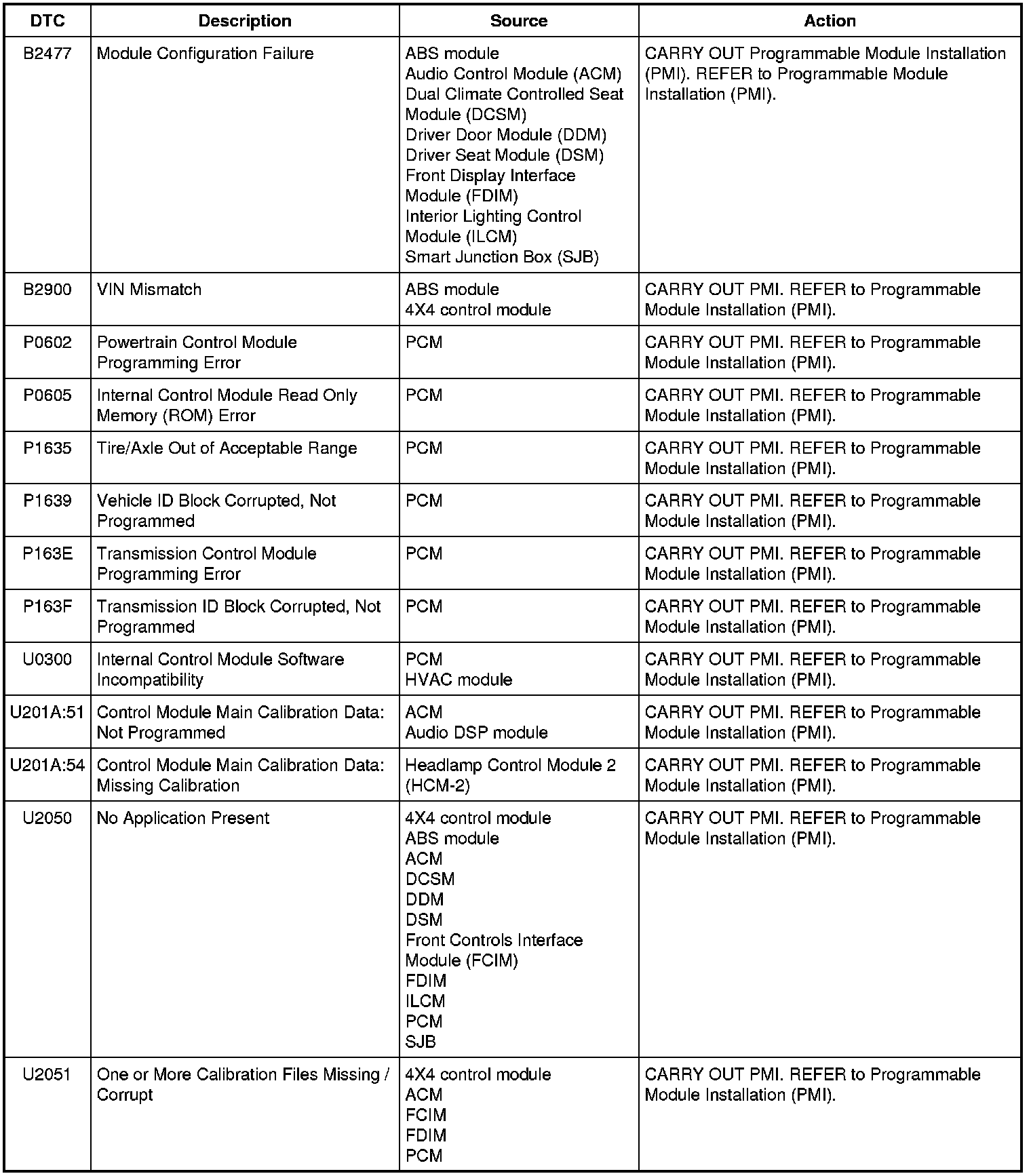 Home >> Ford >> 2011 >> Taurus AWD V6-3.5L >> Repair and Diagnosis >> Powertrain Management >> Computers and Control Systems >> Information Bus >> Testing and Inspection >> Diagnostic Trouble Code Tests and Associated Procedures >> Module Configuration